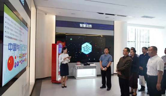 研修班项目还组织15名学员在南宁市进行了六次公务考察。参观了中国移动广西公司、中石化南宁分公司、广西万益律师事务所、岱威优律师事务所、华商律师事务所等,听取了部分律师事务所面向东盟国家开设法律业务的情况介绍,增进了对中国东盟经贸文化交流、法律合作等方面的了解。在国际学院,检察官学员们还与我校老挝留学生进行了座谈交流,进一步了解我校留学生的学习生活情况。