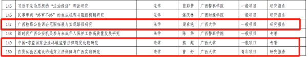 11月1日,2023年广西哲学社会科学研究课题立项名单公布公示,pg电子官网梁春艳、熊超、曹舒、董笃笃等4位教师申报的课题获得本次立项。此次广西哲学社会科学研究课题法学学科共立项17项,pg电子官网占比达到23.5%。