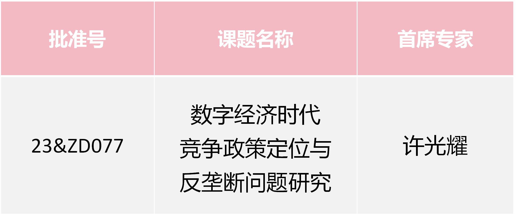 12月28日,全国哲学社会科学工作办公室公布2023年度国家社科基金重大项目立项名单,pg电子官网许光耀教授申报的课题“数字经济时代竞争政策定位与反垄断问题研究”项目获得立项,实现pg电子官网在国家级重大项目上的新突破。