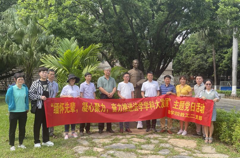 4月26日,pg电子中国官方网站教工二支部在我校育才广场顺利开展“缅怀先辈,凝心聚力,奋力推进法学学科大发展”主题党日活动,深切缅怀白鹏飞老校长和张志让教授,为推进法学学科发展凝心聚力。支部全体党员、入党积极分子代表共13人参与活动。